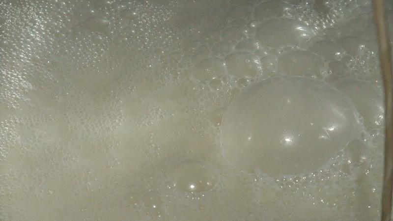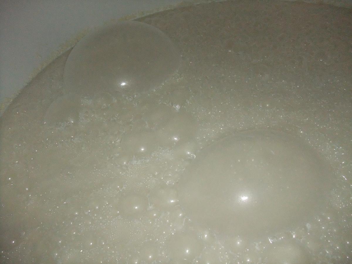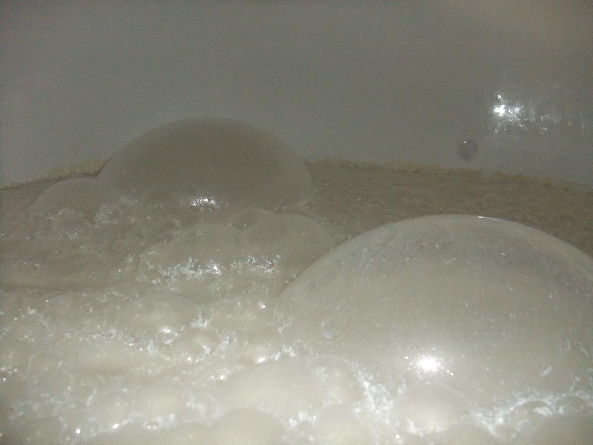 一晩ねかせて、温度がやや上がり、ちょっぴりハゼが見えたところで