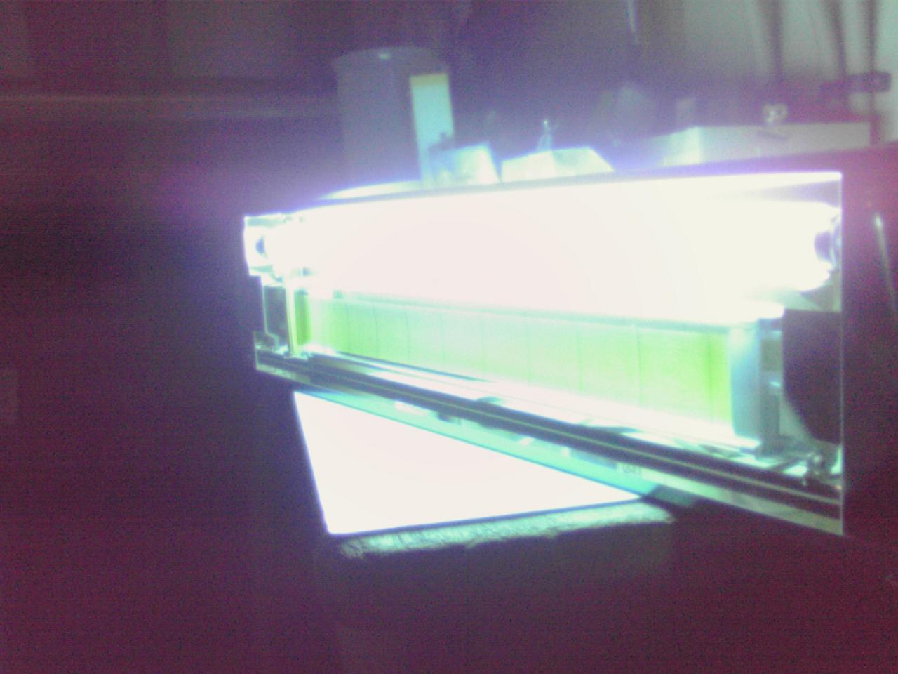 仕込が始まり、モロミの甘い匂いなどにさそわれ こいつらがやってきます。 コバエ 小さく、普段はどこにいるのかわからないが もろみを採取した、分析用のもろみにぎっちりいます。 もろみの中へ入ってもらっては困るので、 こいつの出番です。 害虫駆除ハンター。 虫くんの大好きな波長がこいつから ドパドパ出ており、粘着テープに 引っ付くのだ。 その効果は後日 この機械はデモ機なので、 暫くしたら返却せねばなりません。