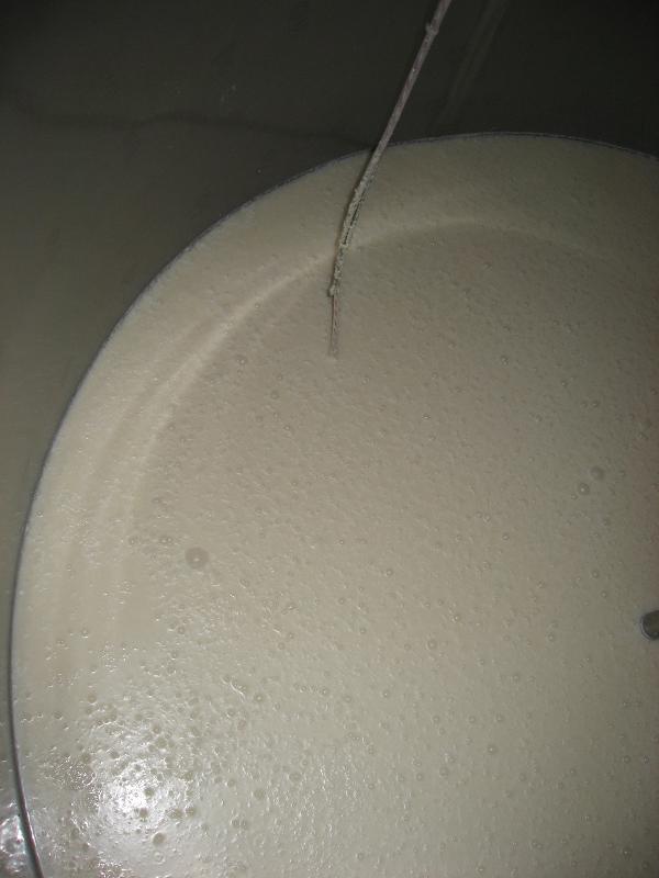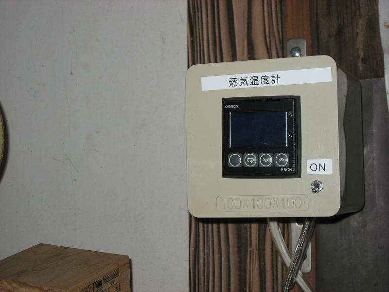 しばらくぶりです。 風邪をひいてしまい、鼻水だーだーです。 マスクしながら仕事です。 室の中は応えますね。 さて、もろみ達です。 賀茂金秀 純米しぼりたて生 用 来週末には搾れそうです。 今年は、過去のものより、酵母を変えて仕込んだので 酸が多く出ています。 エッジの利いた旨酒めざします。 そして、 純米吟醸 雄町 6日目です。精米50%のものですが、 気温の高いときに良く仕込めたものです。 仕込み水の一部に氷を使用して、予定どうりに仕込みました。 温度の急上昇もなく、今のところいい感じ。 今年の蒸しはこいつとにらめっこです。 甑に入る直前の温度。 乾燥蒸気を入れる前は 102度 終わりから15分くらいは乾いた蒸気をあてて お米の表面を乾かします。そして、外硬内軟(がいこうないなん)な 蒸し米に仕上げるのです。 その温度が安定しないので、その時間は釜場に張り付いています。 105度~106度が理想なんですが。 温度を見ながら、バルブ操作です。 今年からの機械なので、しばらくはバルブと格闘が続きそうです。