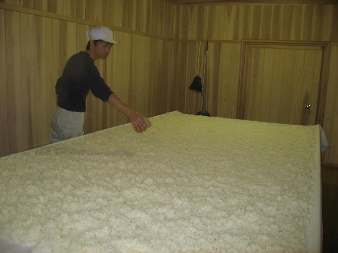 本日蒸しあがった、八反錦60%麹米。上々です。
