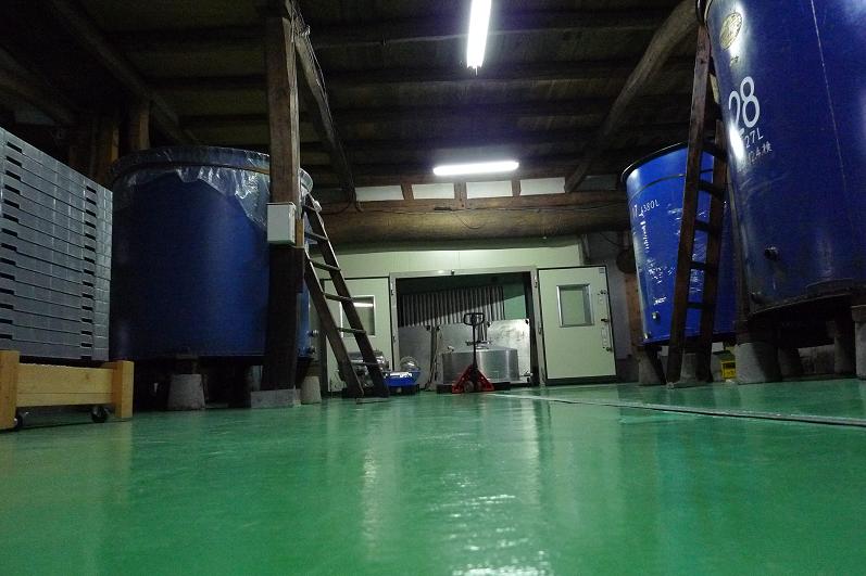 床もほぼ前面、コンクリートの打ち変。色もフレッシュグリーンへ。明るい蔵へと変わりました。